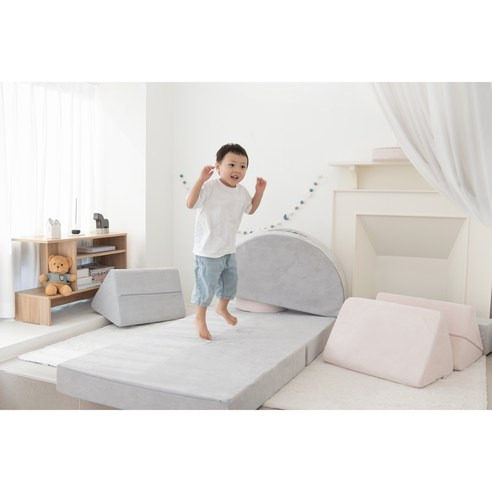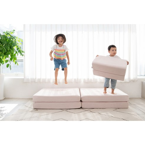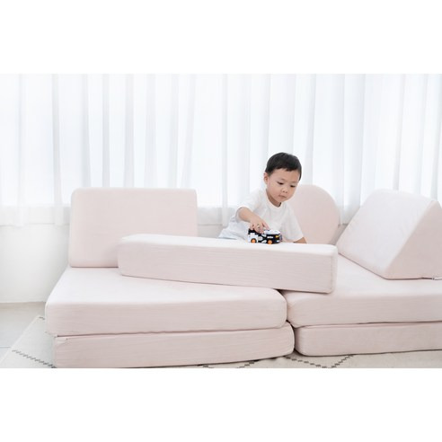 그리고 이 쇼파는 놀랍게도 그냥 앉는 용도로만 사용하지 않아요! 접어서 매트로 변신시키거나 높이를 조절해 소꿉놀이용 테이블로 활용할 수도 있어요 ㅎㅎ 그래서 아이들이 더 적극적으로 창의적인 놀이를 하게 되더라고요~ 무한 변신 가능한 점에서 장난감 겸 가구로 딱이에요!